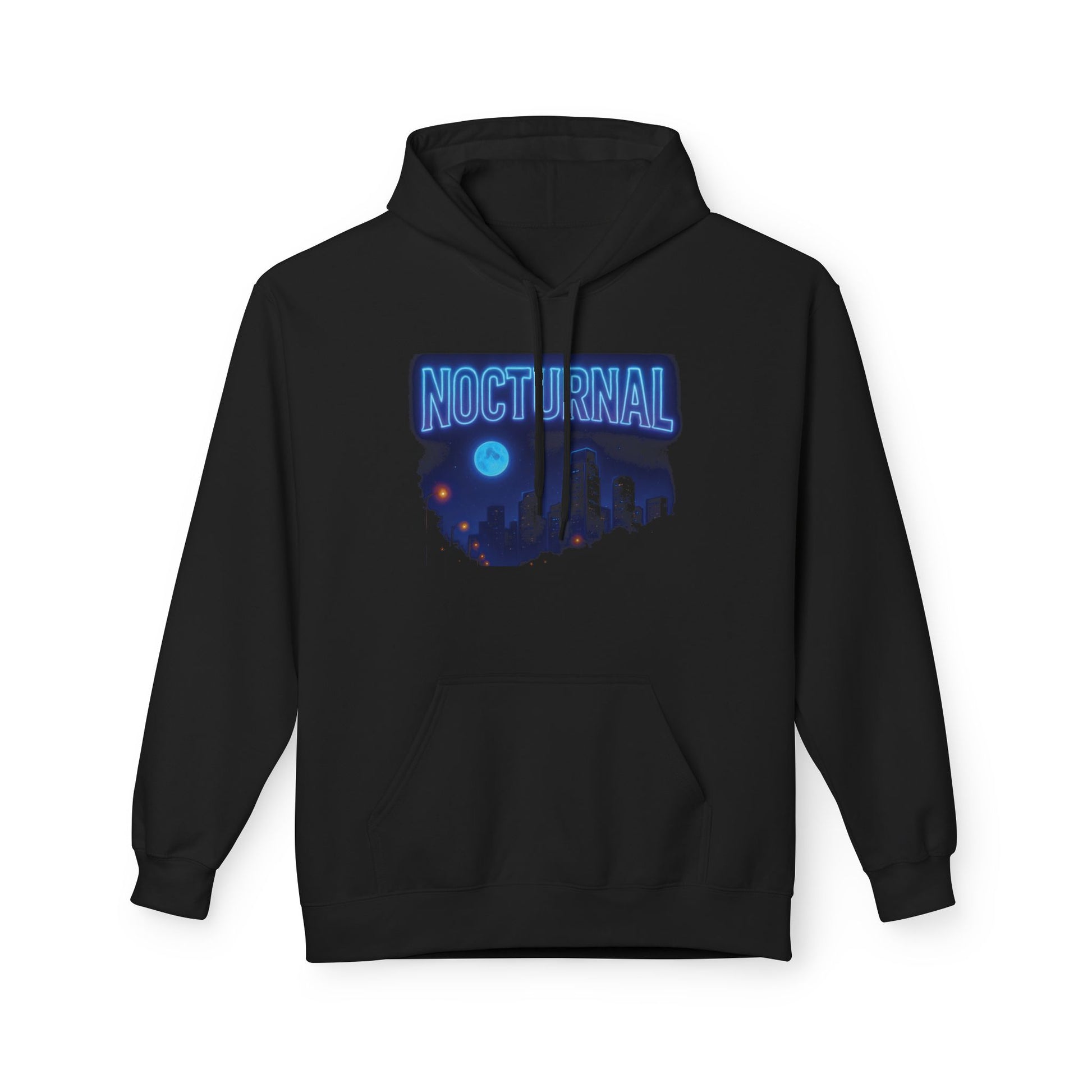 Step into the night with confidence in the “Nocturnal” Hoodie — a bold, glowing tribute to those who thrive when the city sleeps. Featuring a striking neon-blue “NOCTURNAL” graphic set against a city skyline and full moon, this piece captures the essence of late-night hustle and street energy.